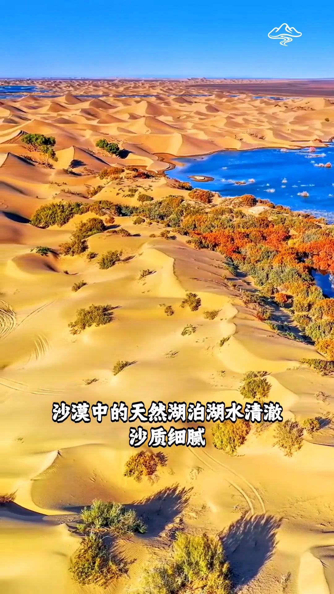 腾格里沙漠月亮湖 沙漠中的天然湖泊湖水清澈沙质细腻