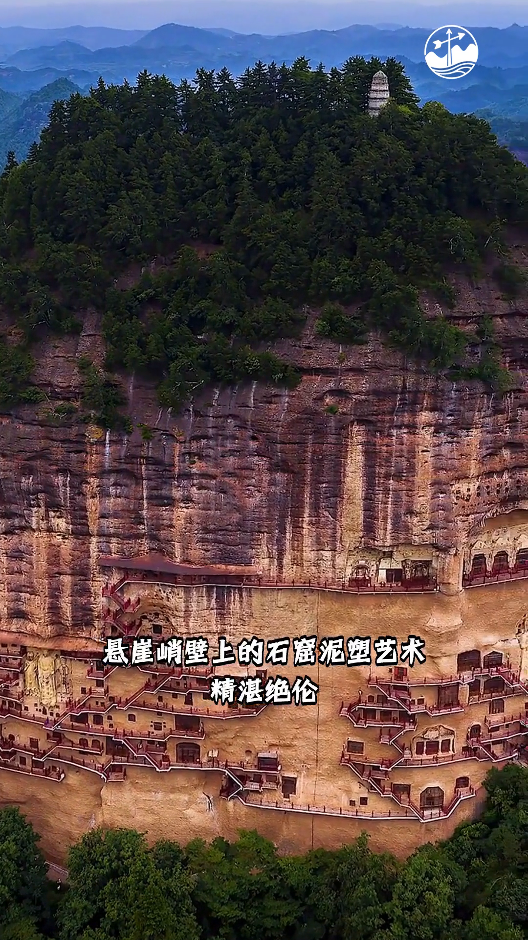 麦积山石窟 悬崖峭壁上的石窟泥塑艺术精湛绝伦