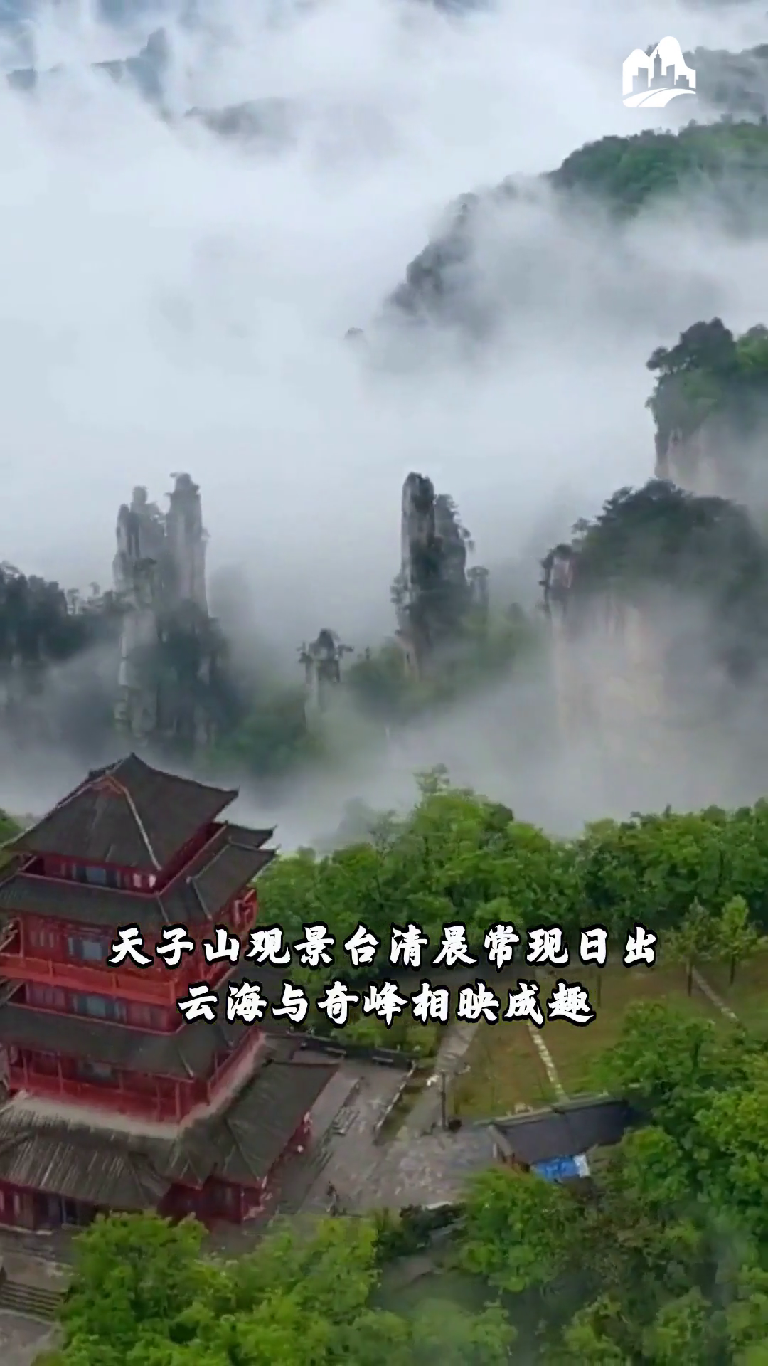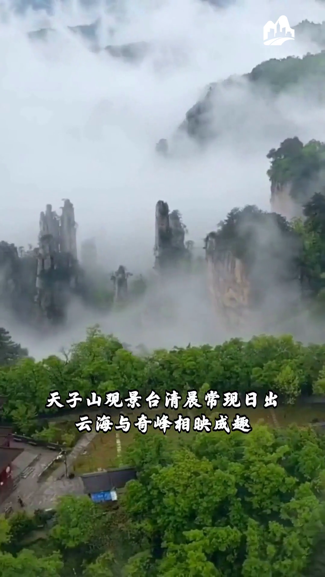 张家界武陵源 天子山观景台清晨常现日出云海与奇峰相映成趣