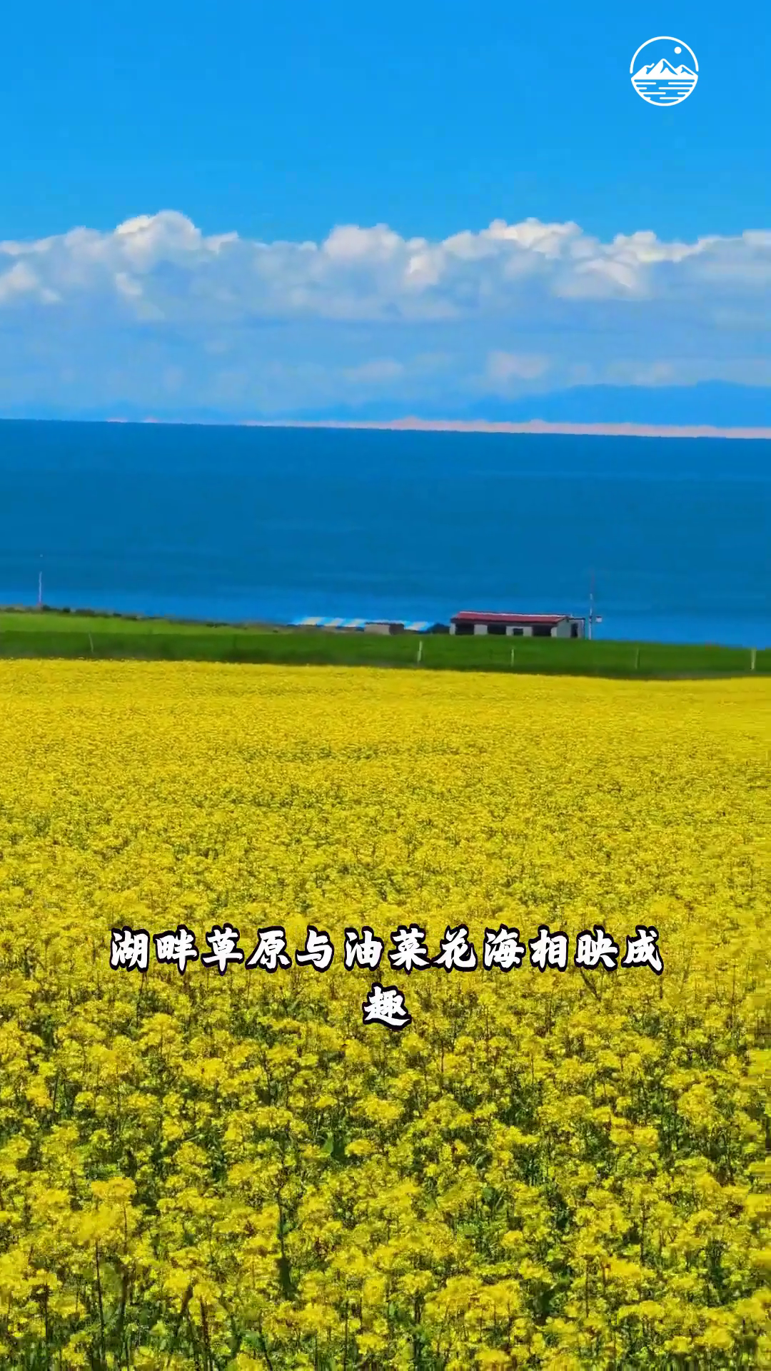 青海湖景区 中国最大内陆湖 湖水湛蓝如宝石 湖畔草原与油菜花海相映成趣