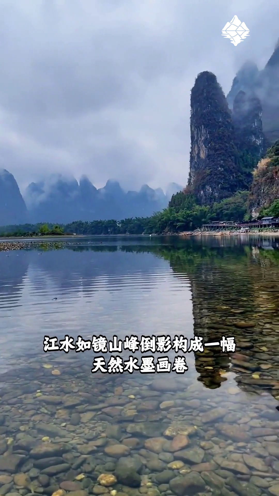 桂林漓江风景区 江水如镜山峰倒影构成一幅天然水墨画卷