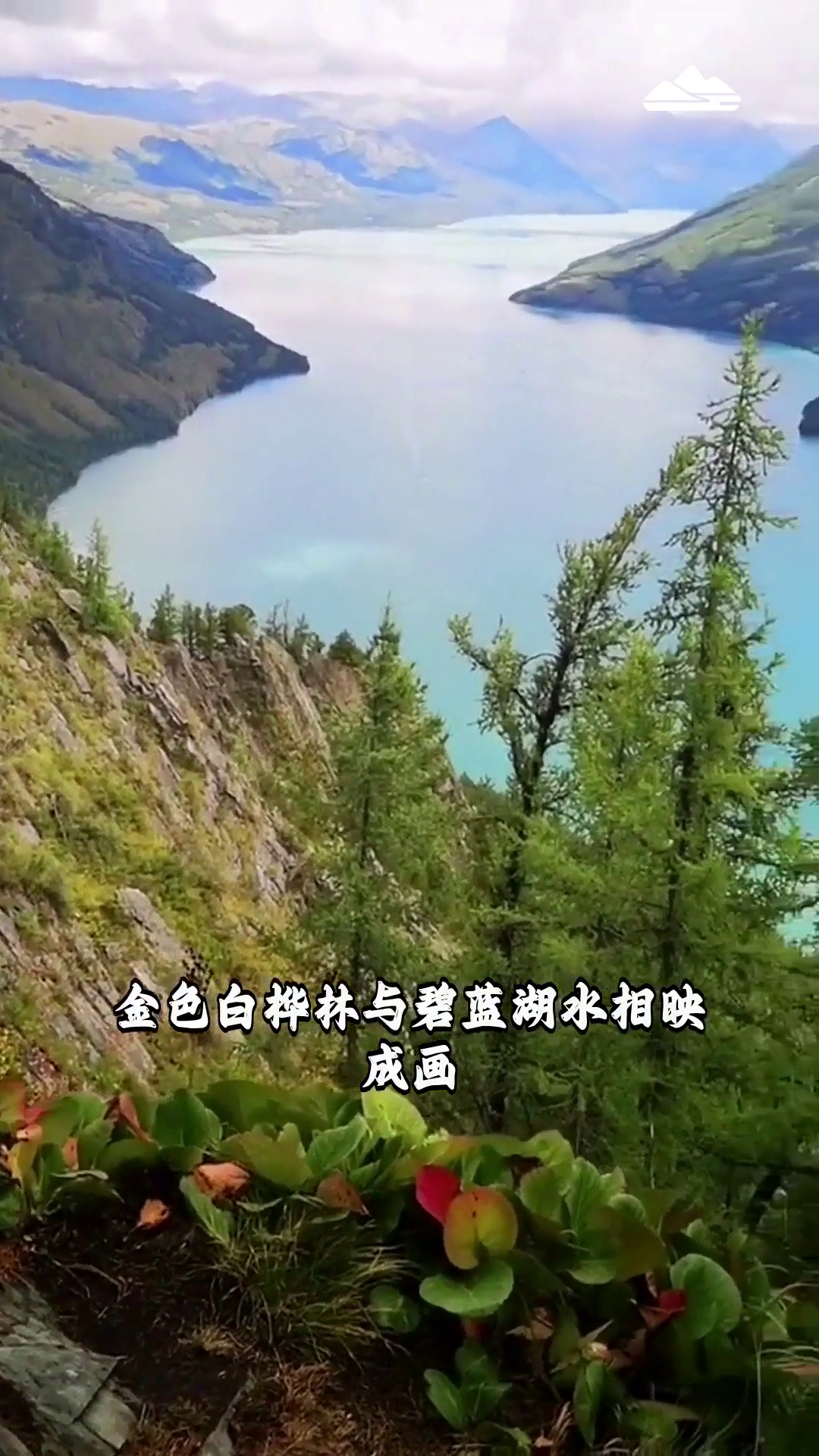 新疆喀纳斯 金色白桦林与碧蓝湖水相映成画