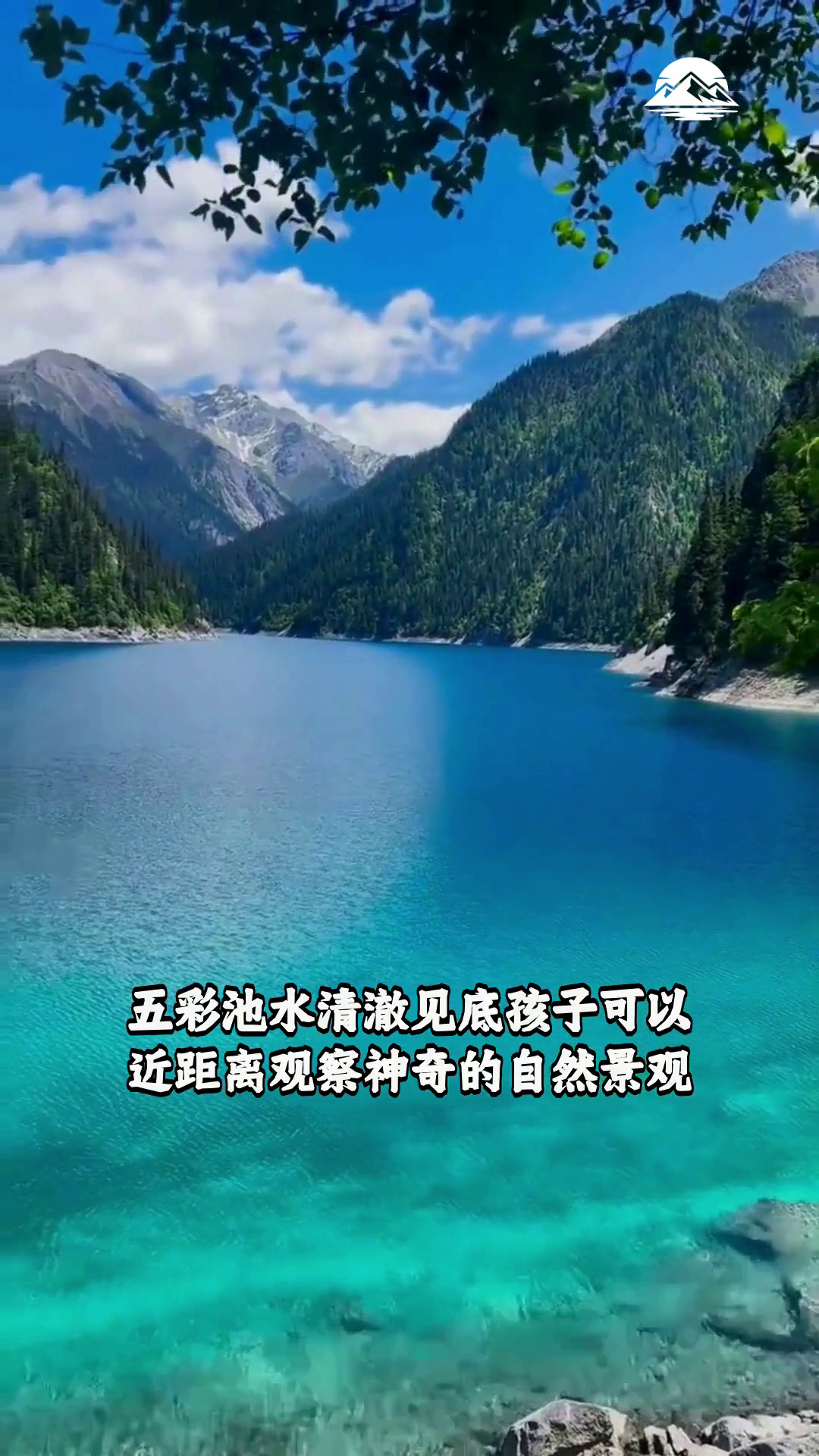 四川九寨沟景区 五彩池水清澈见底孩子可以近距离观察神奇的自然景观