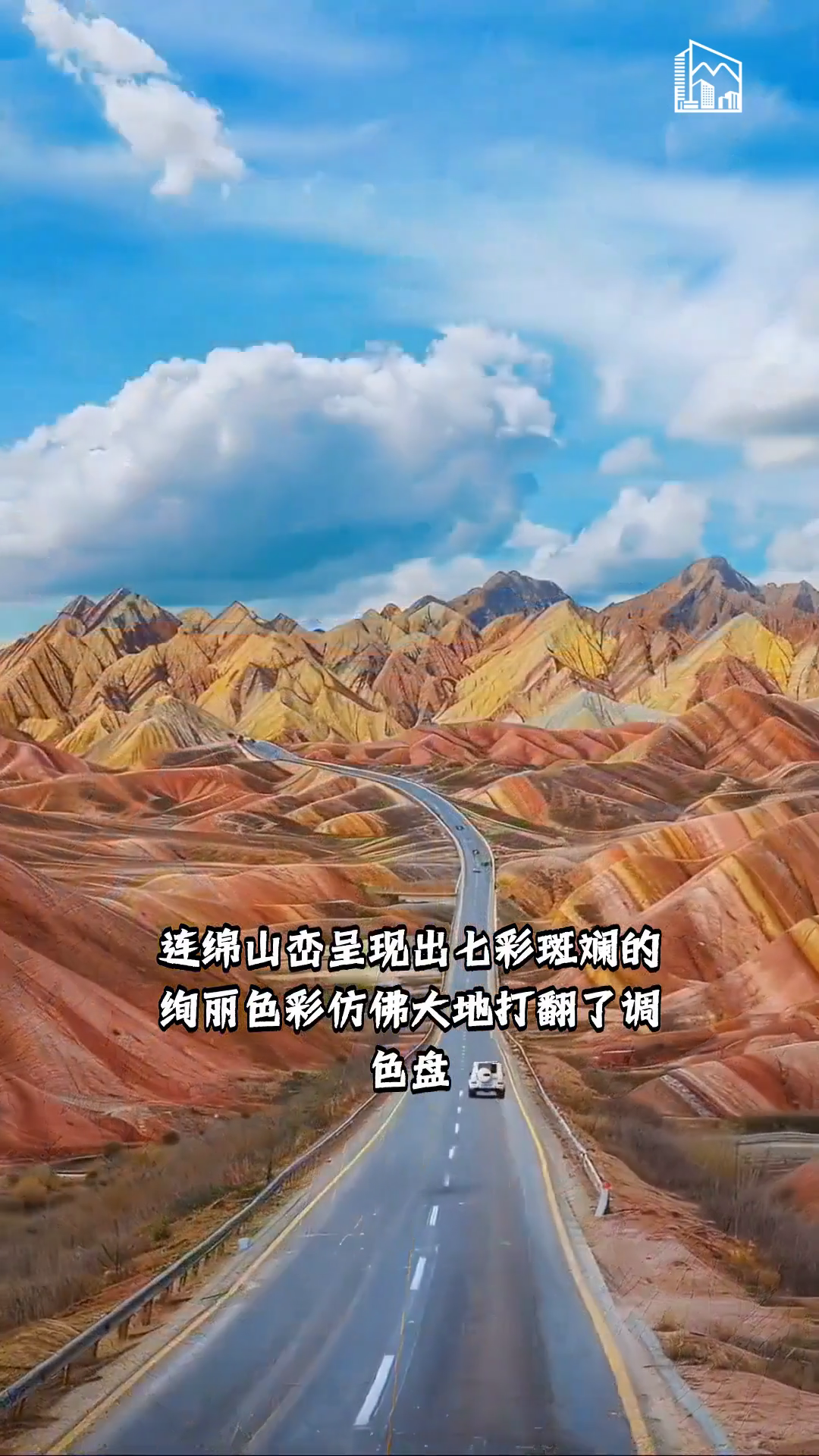 张掖七彩丹霞景区 连绵山峦呈现出七彩斑斓的绚丽色彩仿佛大地打翻了调色盘