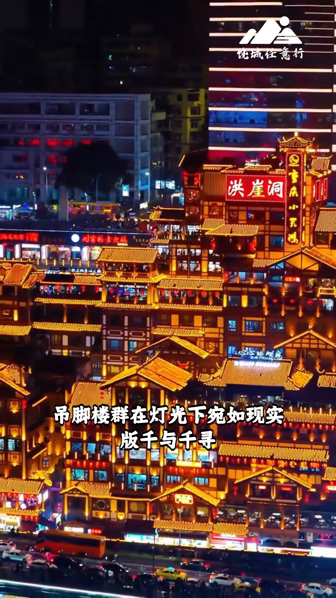 重庆洪崖洞 吊脚楼群在灯光下宛如现实版千与千寻