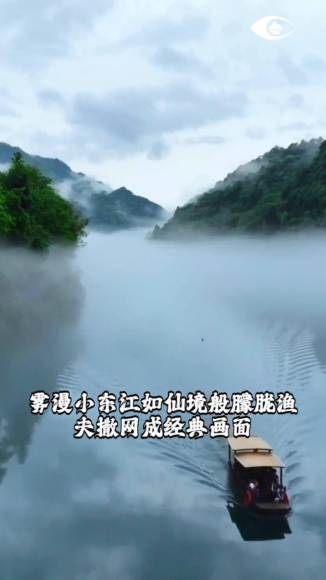 东江湖风景旅游区 雾漫小东江如仙境般朦胧渔夫撒网成经典画面