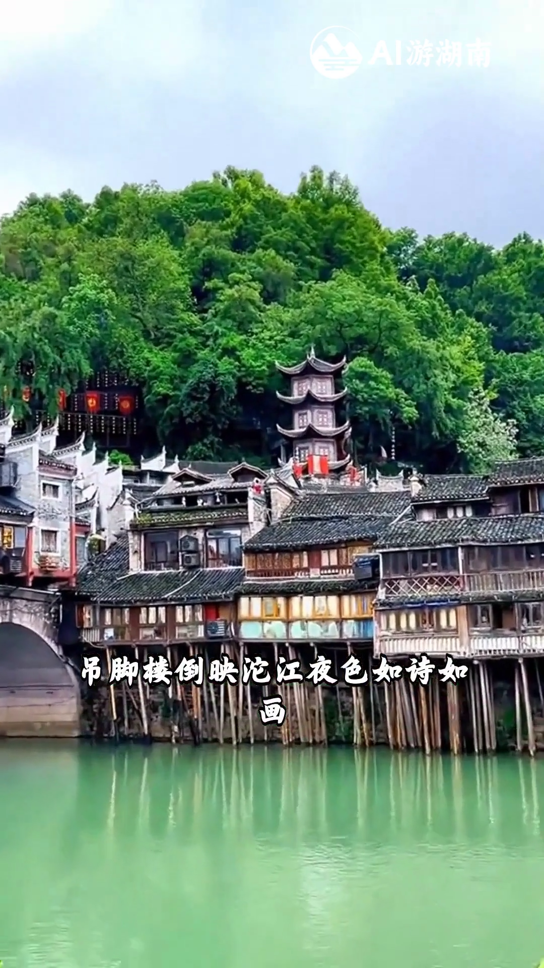 凤凰古城 湘西千年古镇 吊脚楼倒映沱江夜色如诗如画