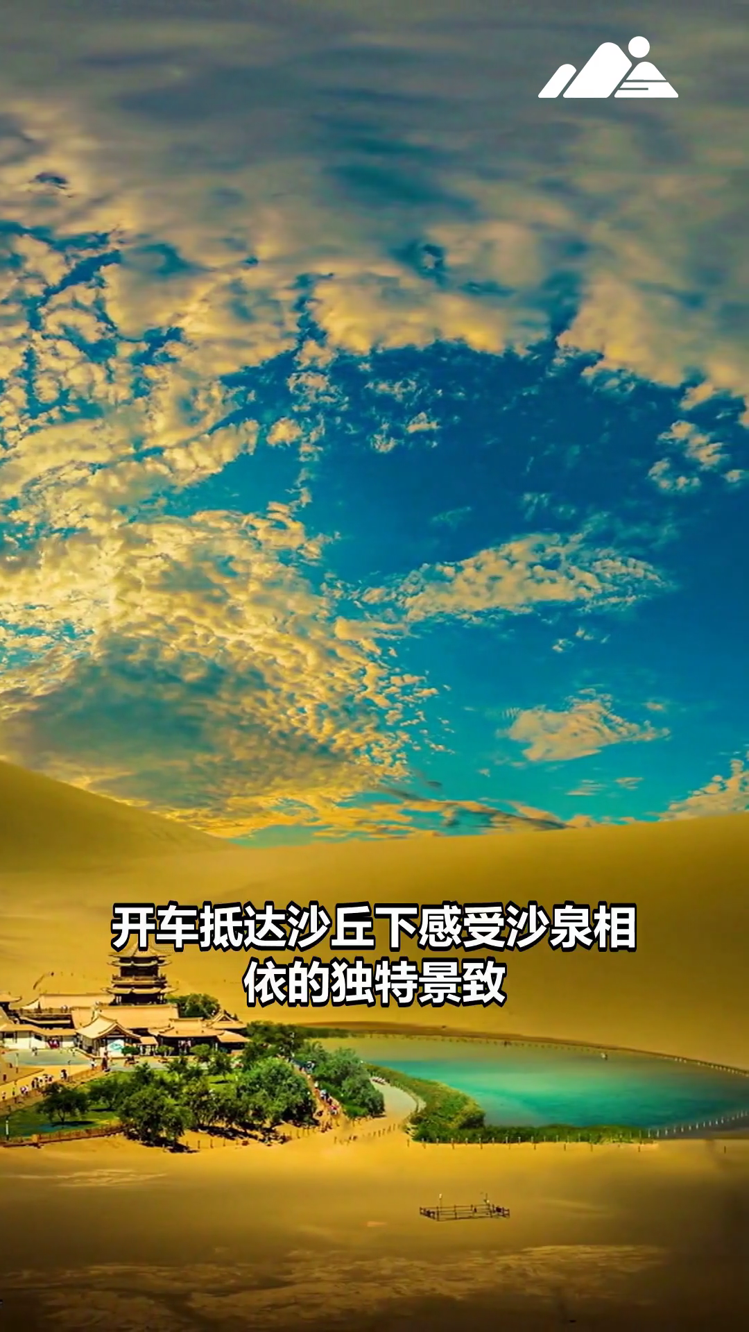 敦煌鸣沙山月牙泉 开车抵达沙丘下感受沙泉相依的独特景致