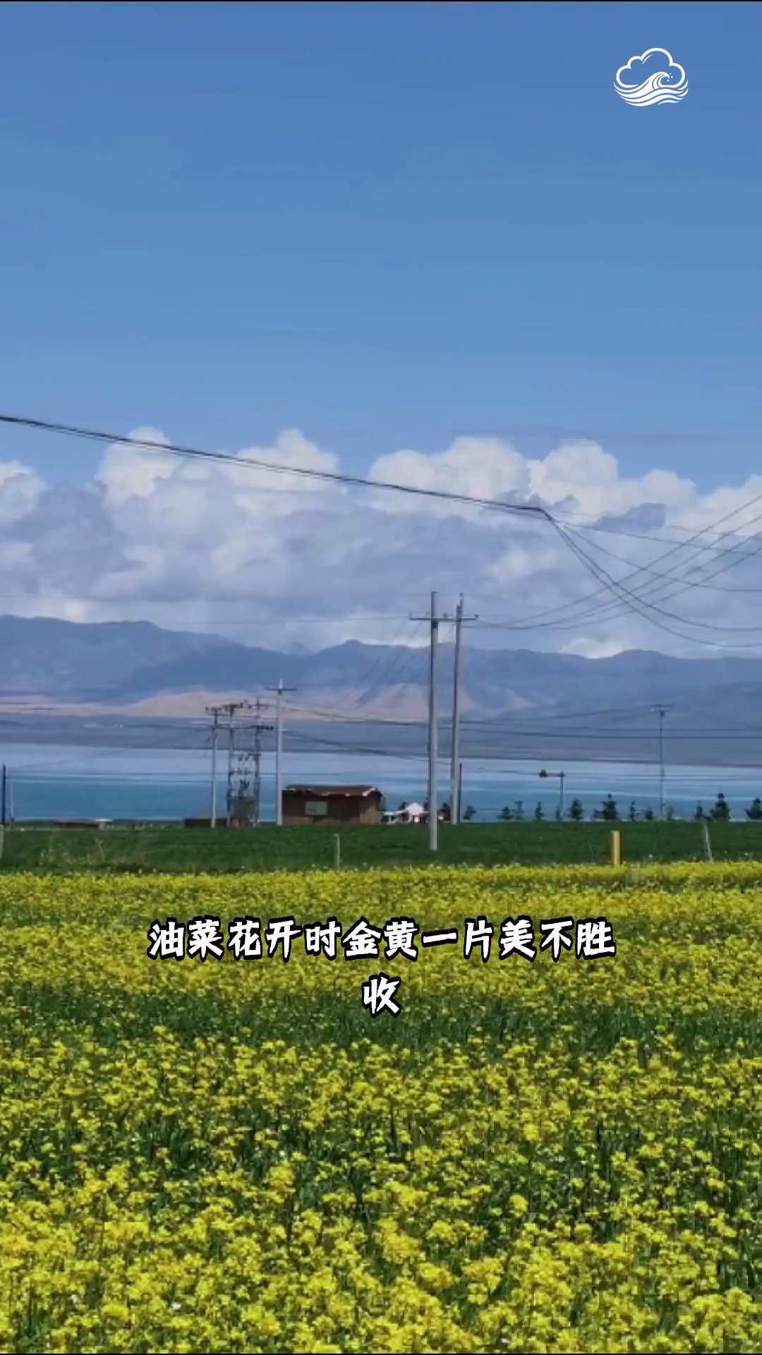 青海湖 湖水湛蓝如宝石镶嵌在草原 油菜花开时金黄一片美不胜收