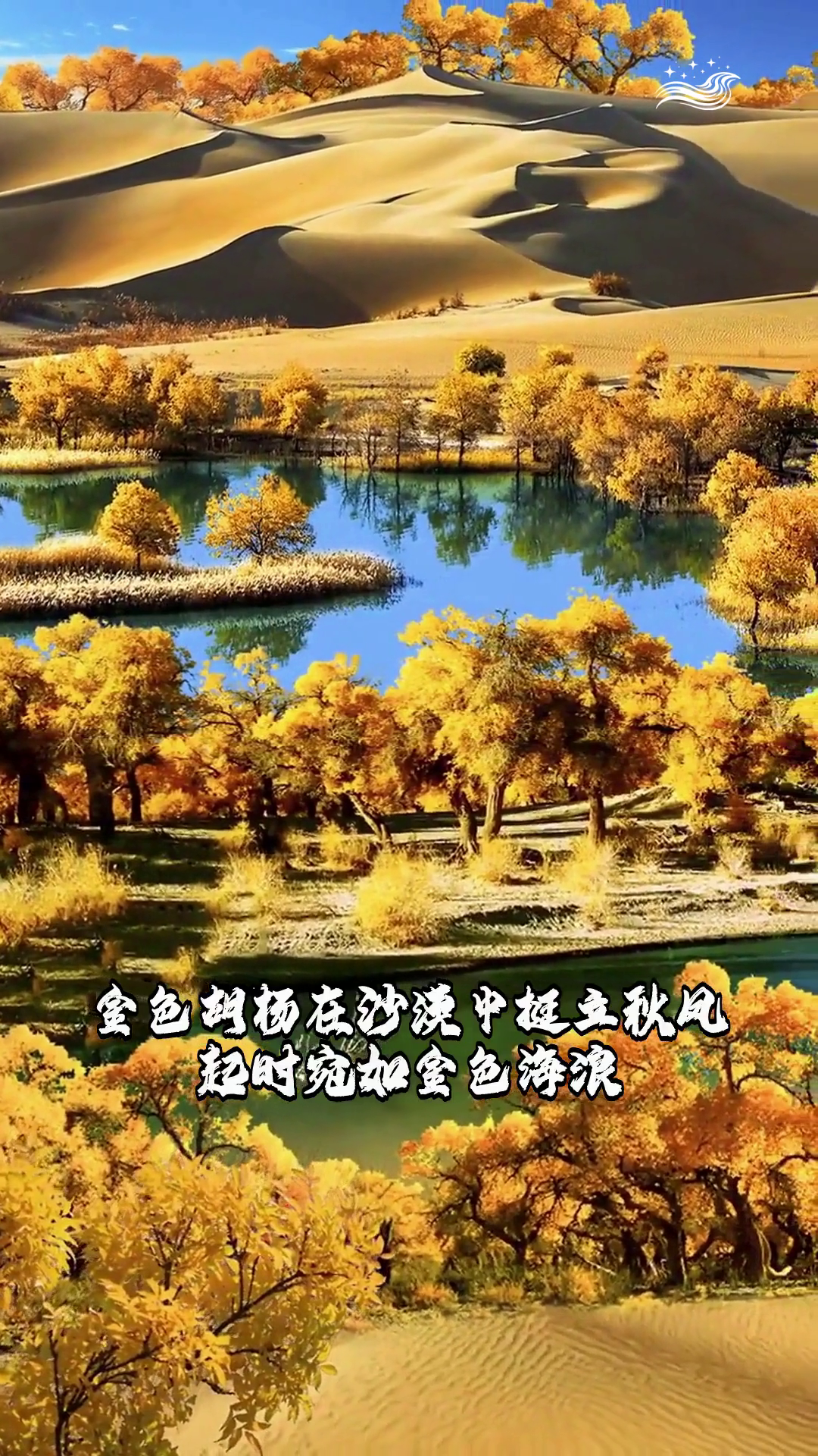 额济纳胡杨林 金色胡杨在沙漠中挺立秋风起时宛如金色海浪