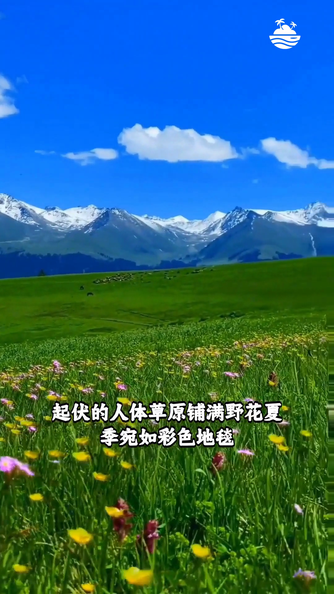 新疆喀拉峻草原 起伏的人体草原铺满野花夏季宛如彩色地毯