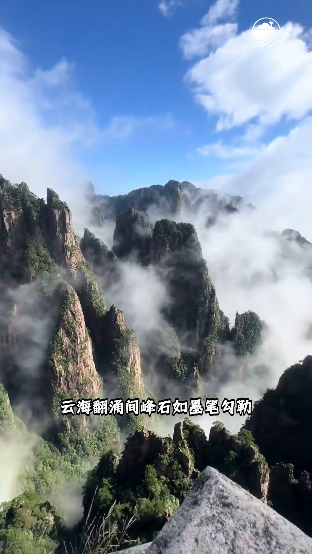 黄山 云海翻涌间峰石如墨笔勾勒