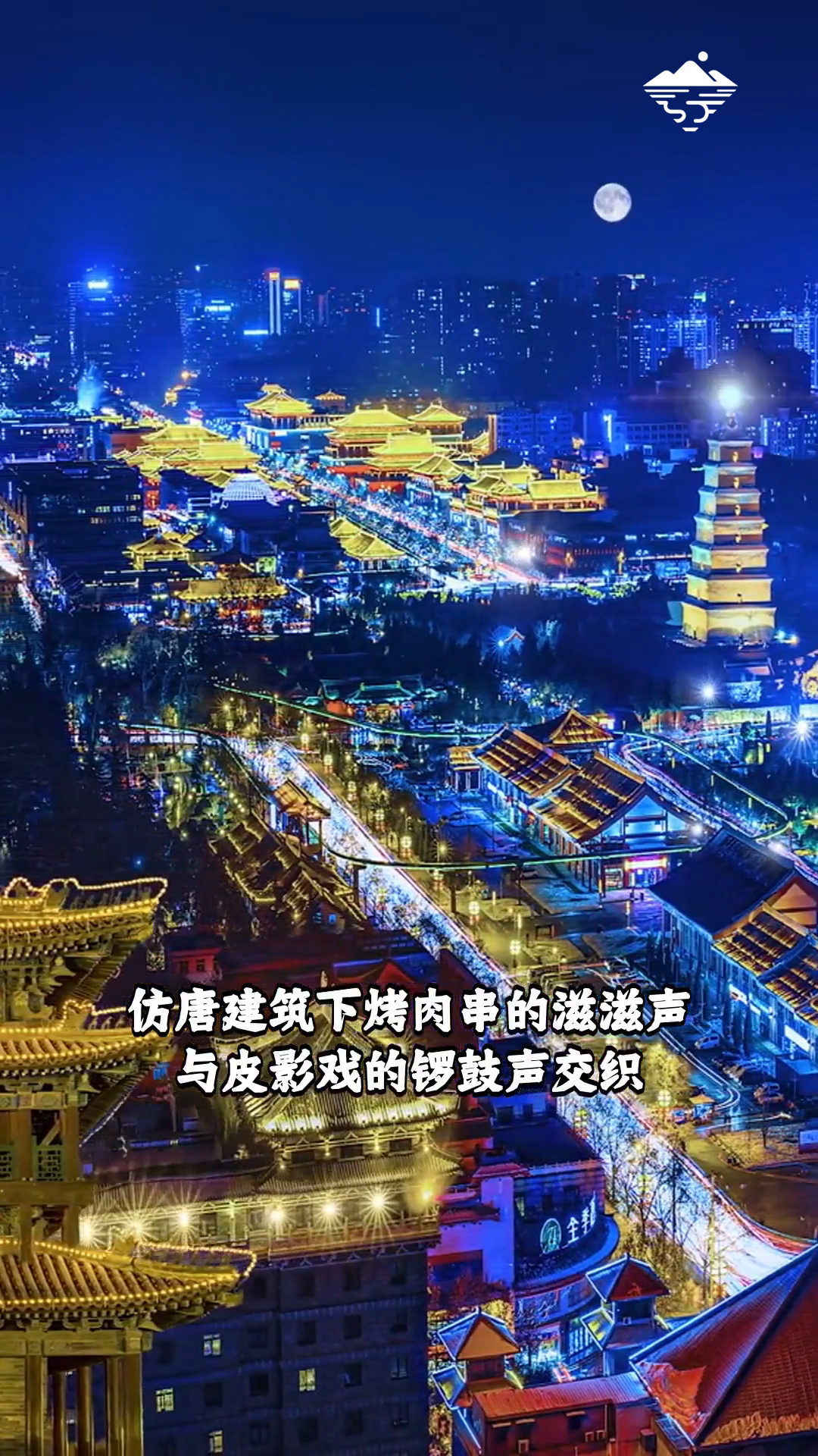 西安大唐不夜城 仿唐建筑下烤肉串的滋滋声与皮影戏的锣鼓声交织