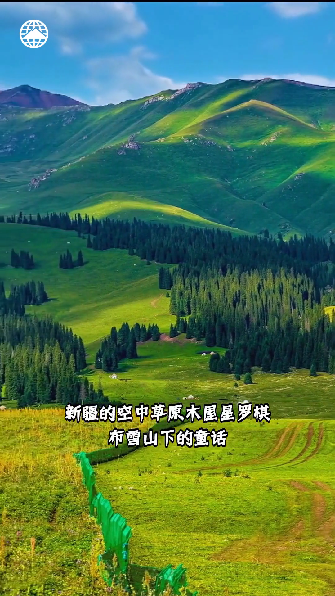 琼库什台 新疆的空中草原木屋星罗棋布雪山下的童话