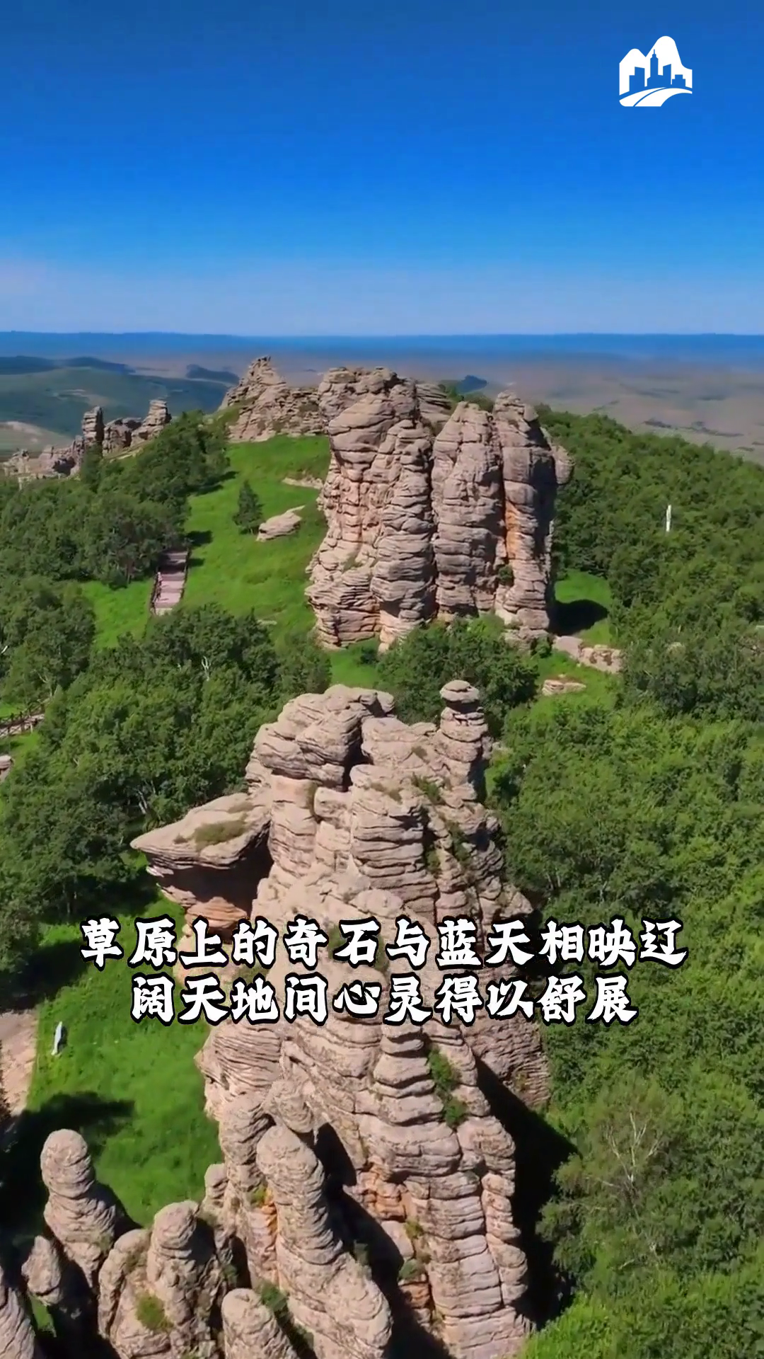 克什克腾石阵景区 草原上的奇石与蓝天相映辽阔天地间心灵得以舒展